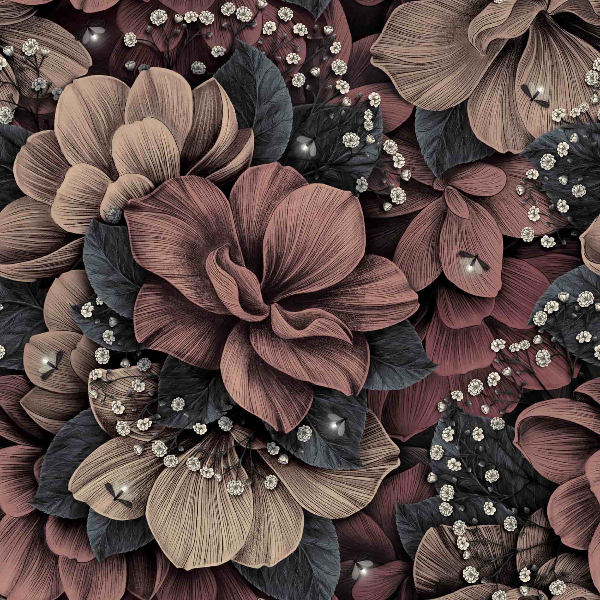 Oberfläche: florales Design, altrose grau beige/natur / graue Rückseite