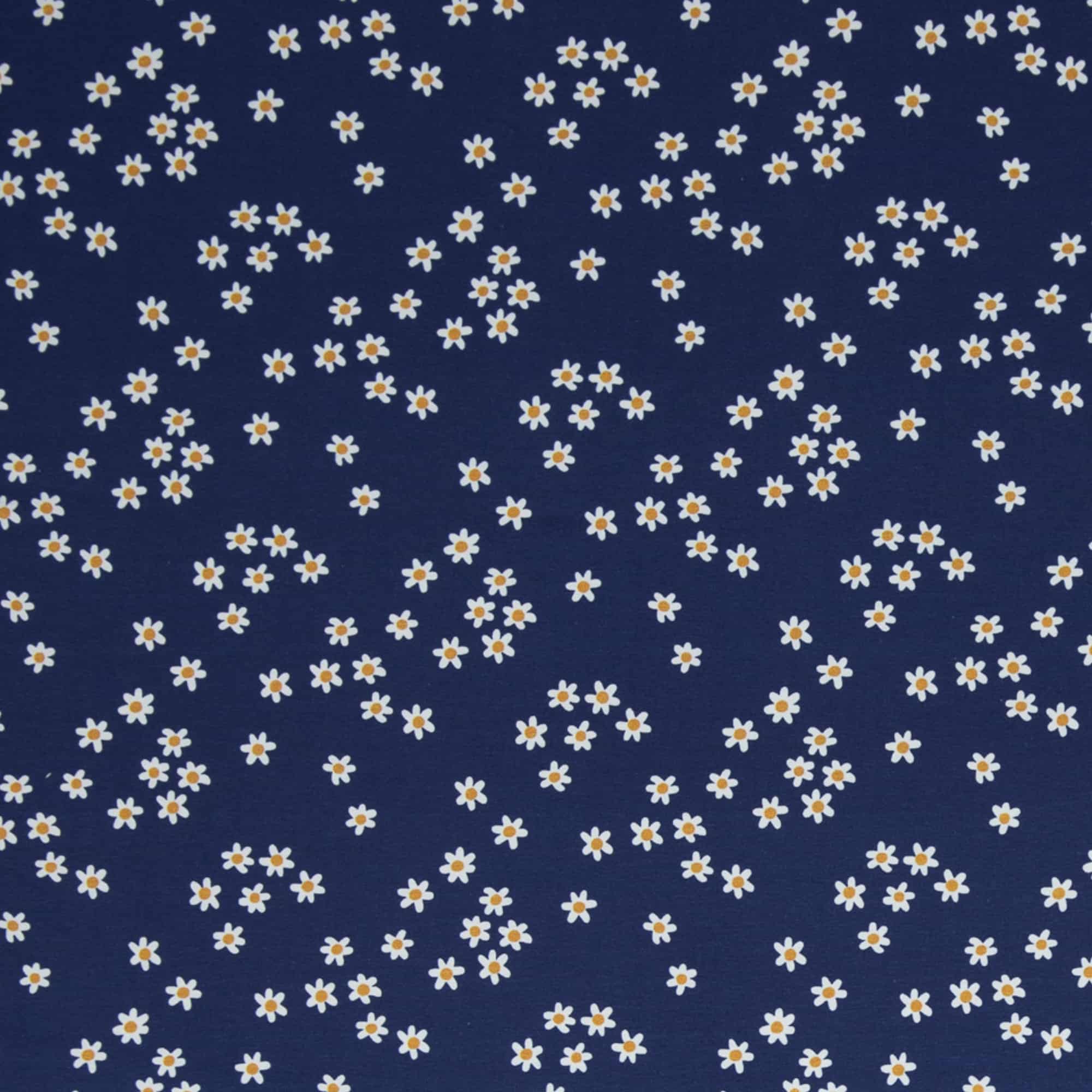 Baumwoll-Jersey mit Blümchen auf blauem Grund