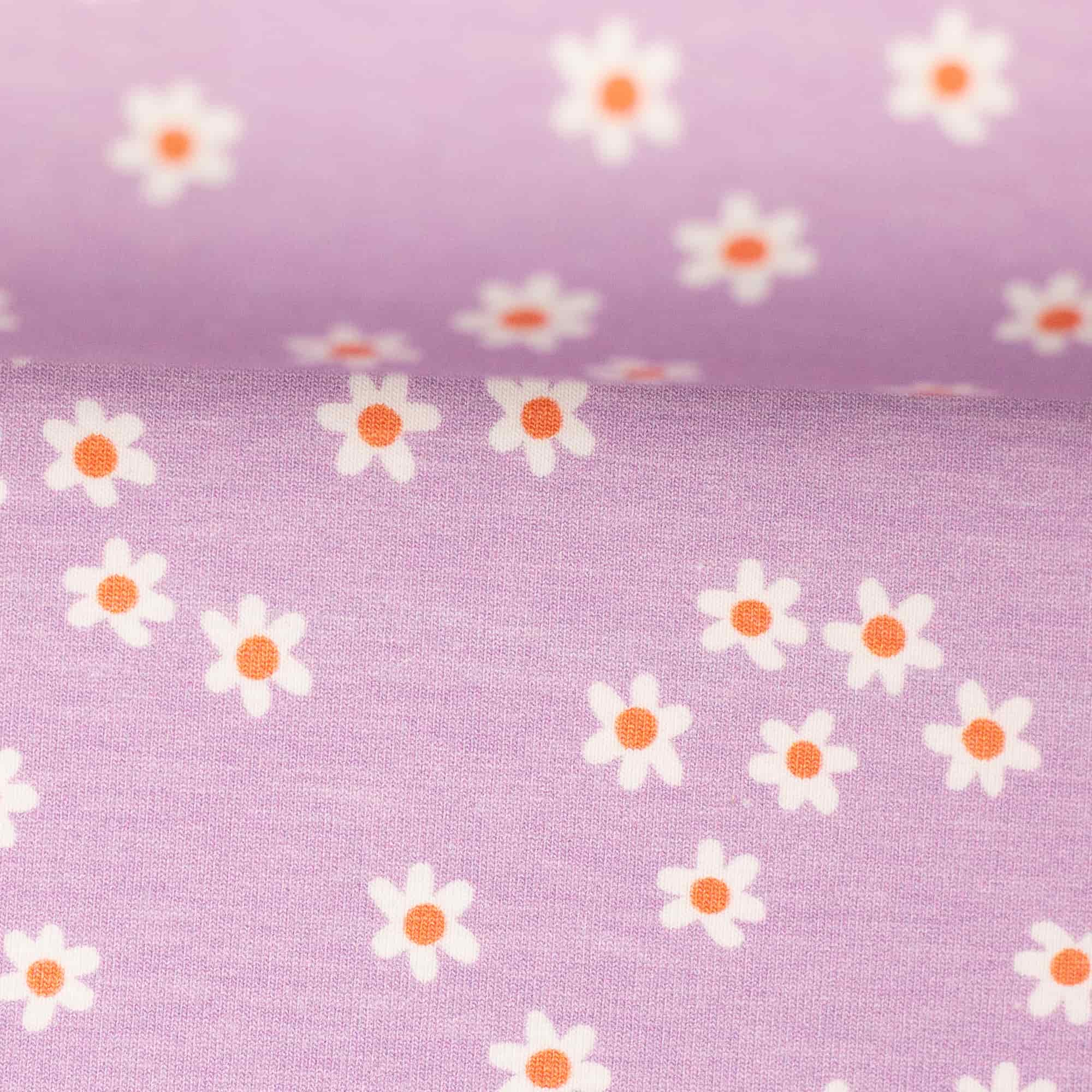 Baumwoll-Jersey mit Blümchen auf fliederfarbigem Grund