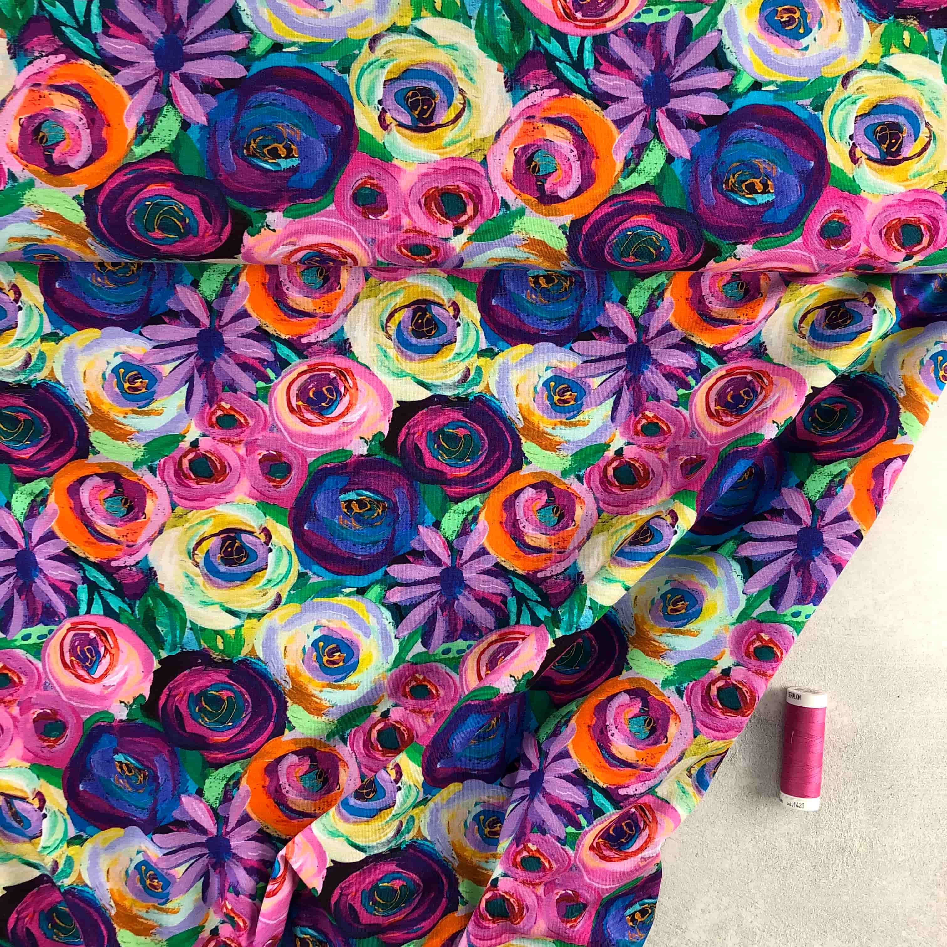 Ob für dich selbst oder für florale Kinderkleidung dieser Baumwoll-Jersey bringt Farbe und Leichtigkeit in deine selbstgenähte Mode.