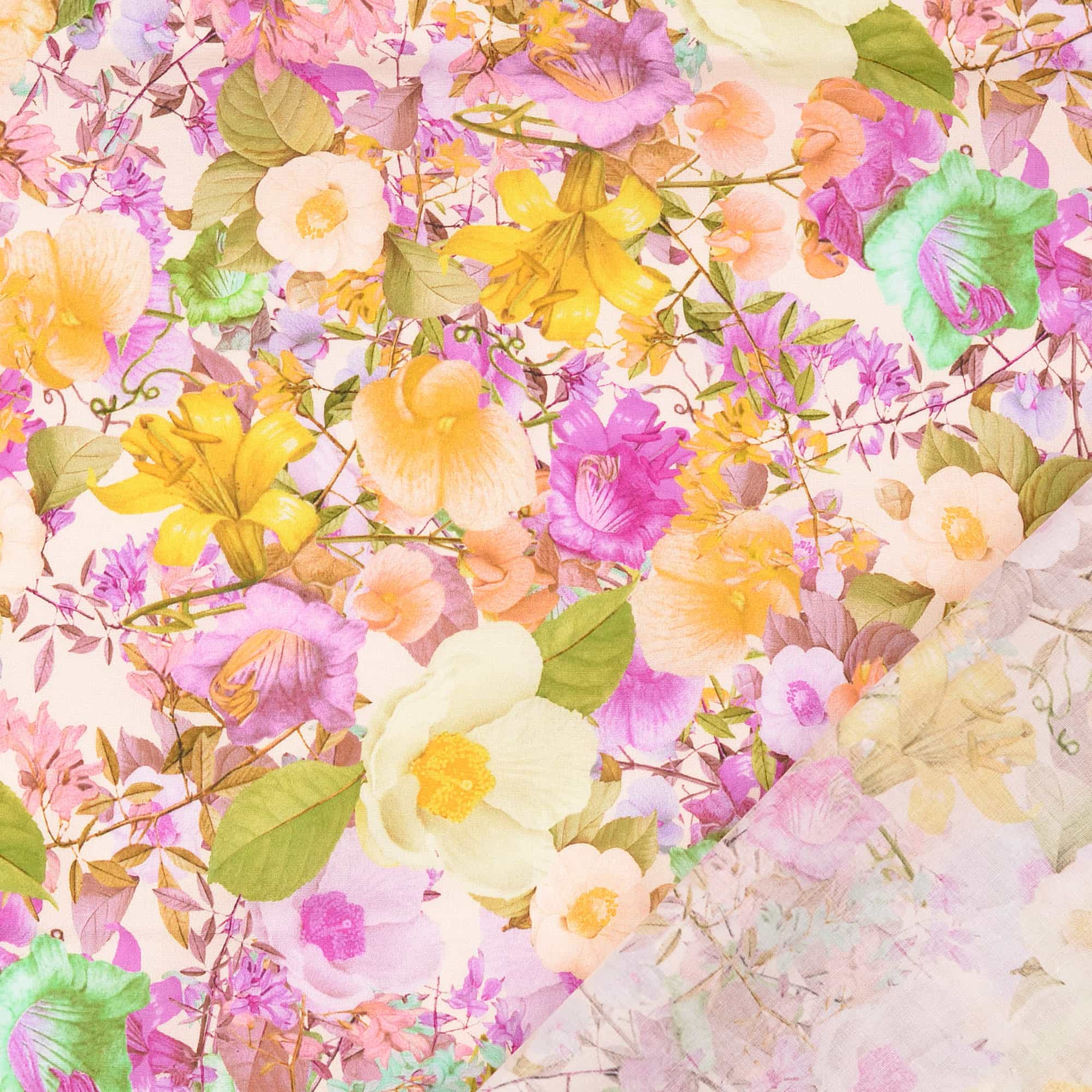 Baumwoll Satin Stretch im blumigen Digitaldruck