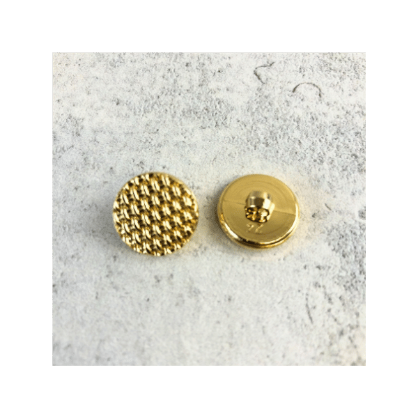 Dieser goldfarbene Knopf, mit seinem geprägtem Muster, ist perfekt geeignet für Blusen, Hemden und Hemdblusenkleider.