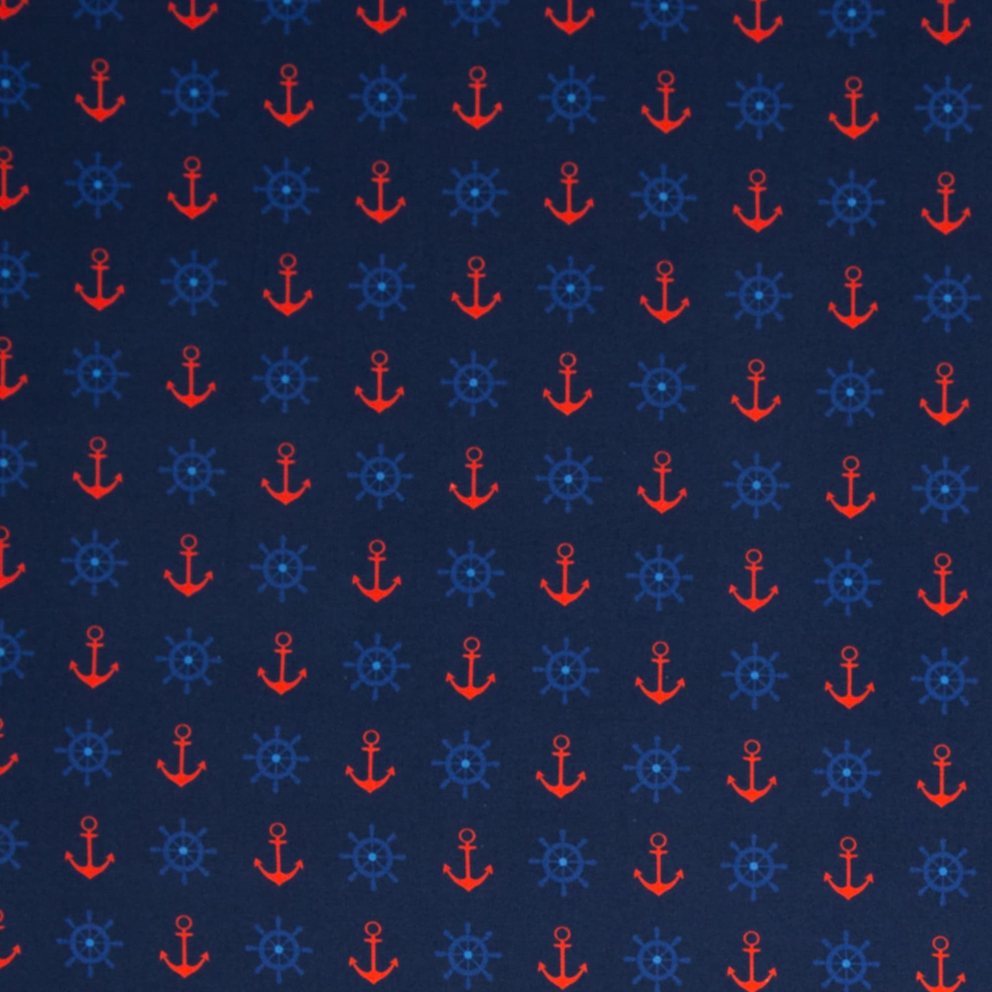 Oberfläche: marine, orange Anker, blaue Steuerräder