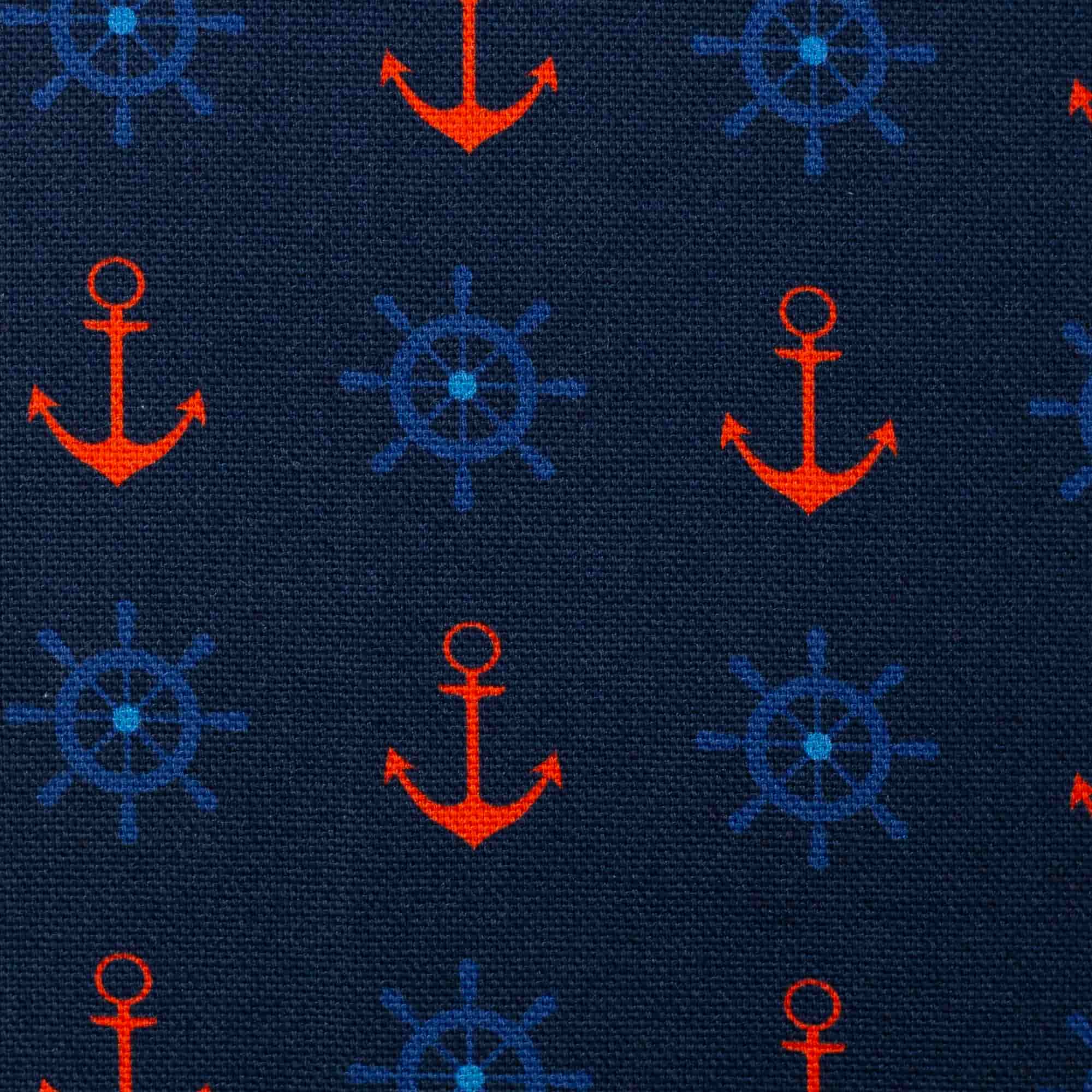 Dieser Canvas Heiner in marine mit orangen Ankern und blauen Steuerrädern