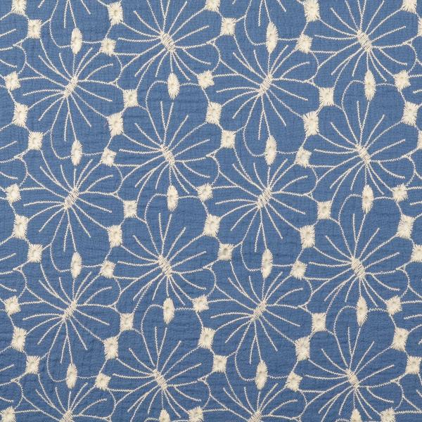 Oberfläche: Jeansblau mit großer Blumenstickerei