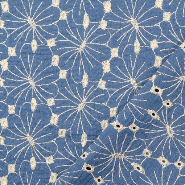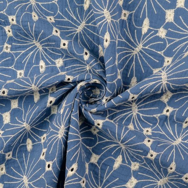 Die floralen Muster verleihen jedem Design einen besonderen Touch. Der Stoff ist vielseitig einsetzbar und fühlt sich fantastisch auf der Haut an. Dieser Musselin mit Stickerei kombiniert luftig-weichen Komfort mit zauberhaftem Design. Ideal für Blusen, Kleider, Boho-Kleider, Sommertücher, Hemden oder Kinderblusen/-kleider – du wirst ihn lieben!