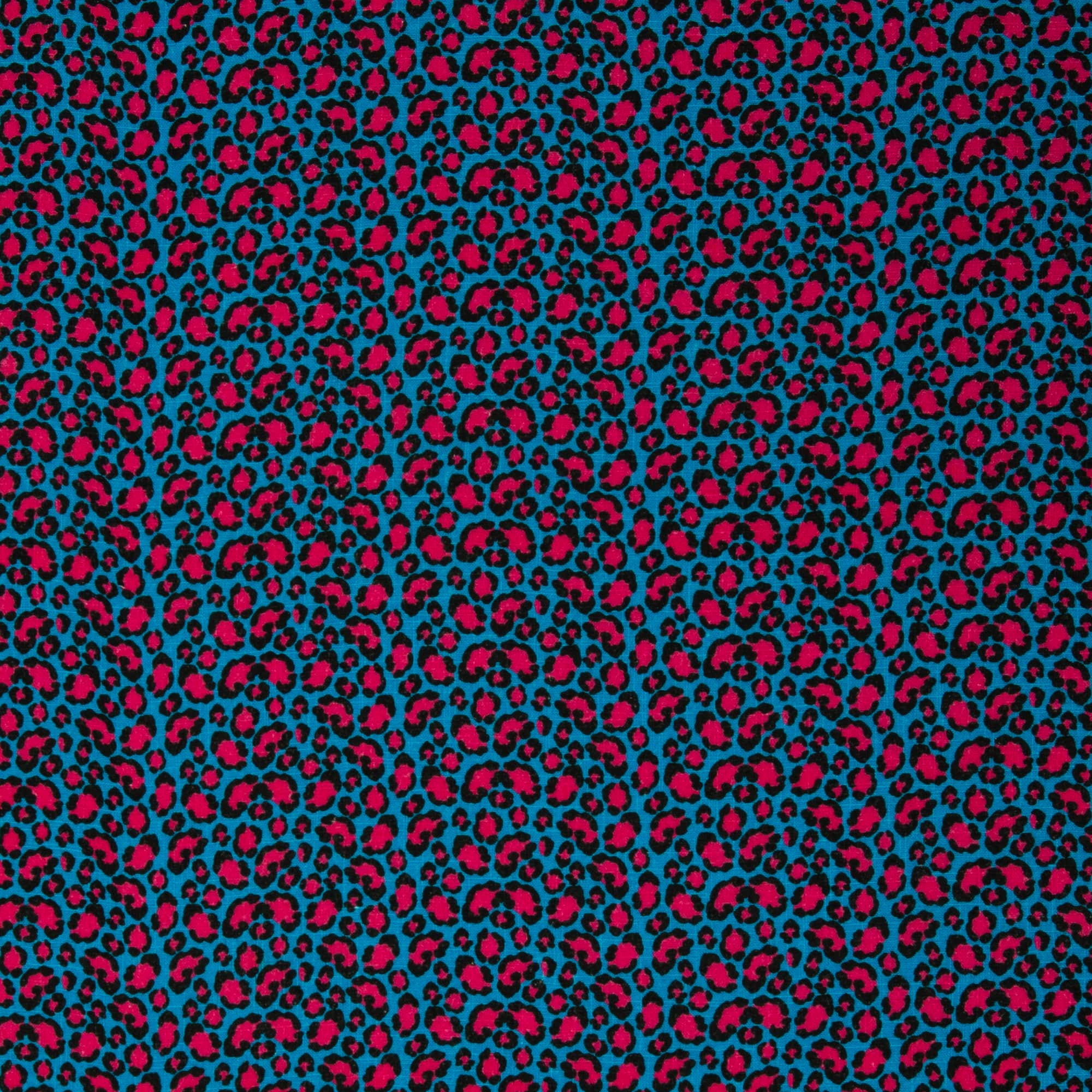 Oberfläche: Türkis mit Leoprint in Schwarz und Korallpink