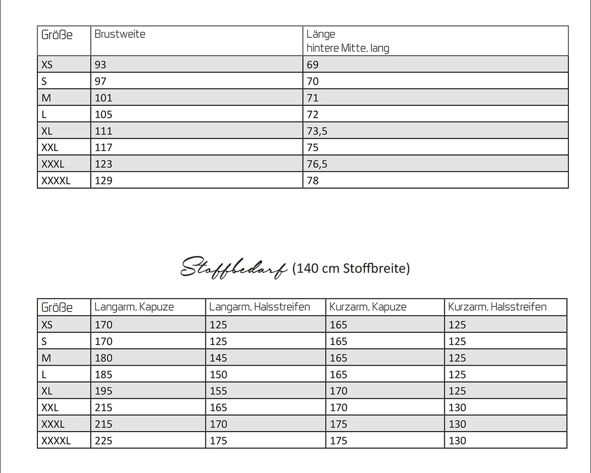 Stoffempfehlung: Das Schnittmuster ist für elastische Stoffe konstruiert wie Jersey, French Terry oder Sweat mit Stretchanteil.