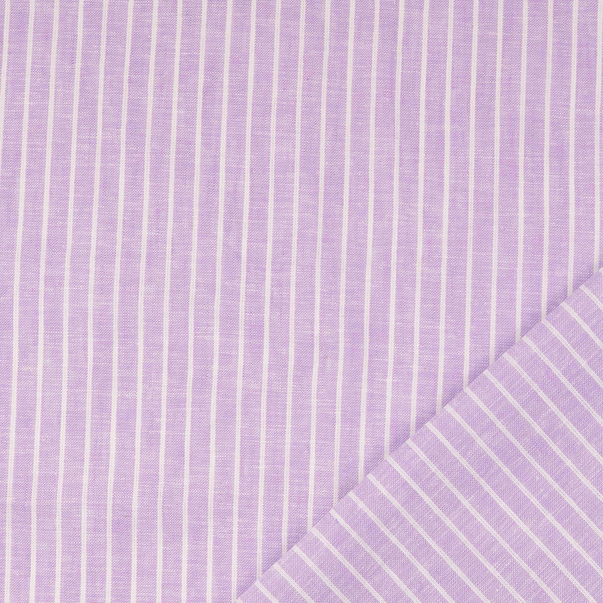Das feine Streifenmuster in Weiß/Flieder verleiht dem Stoff eine besondere Raffinesse und macht ihn perfekt für moderne und zeitlose Designs. Mit einem Gewicht von 160 g/m² ist er ideal für sommerliche Kleidung, zarte Kinderprodukte und elegante Heimtextilien. Da er etwas durchscheinend sein kann, eignet sich ein Futterstoff oder ein Unterkleid für blickdichte Designs.
