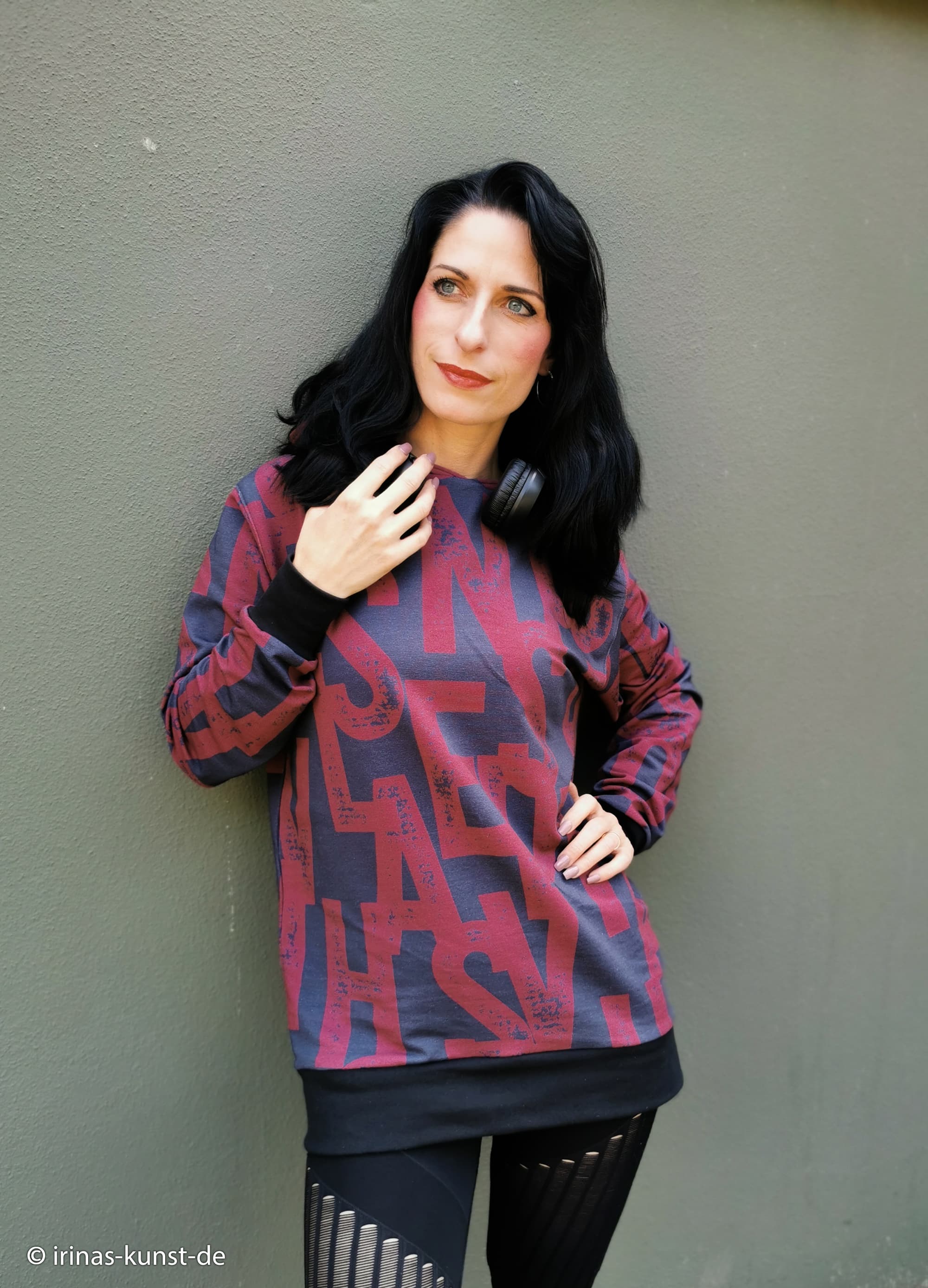 Das coole Design ist absolut unisex und für jedes Alter geeignet – trotz der großen Mustergröße ist es auch für zierliche Personen und Kinder einsetzbar. Das Design wirkt je nach Schnittmuster immer wieder anders, mal sportlich, mal urban und mal absolut stylisch – man kann toll damit spielen. French Terry Love & Happiness hat durch den Modal-Anteil einen traumhaft weichen Fall und eine wunderbar weiche Haptik und trägt sich sehr angenehm. Universell einsetzbar für Jacken, Hoodies, Blazer, Kleider, Sweater, Shirts und Hosen!