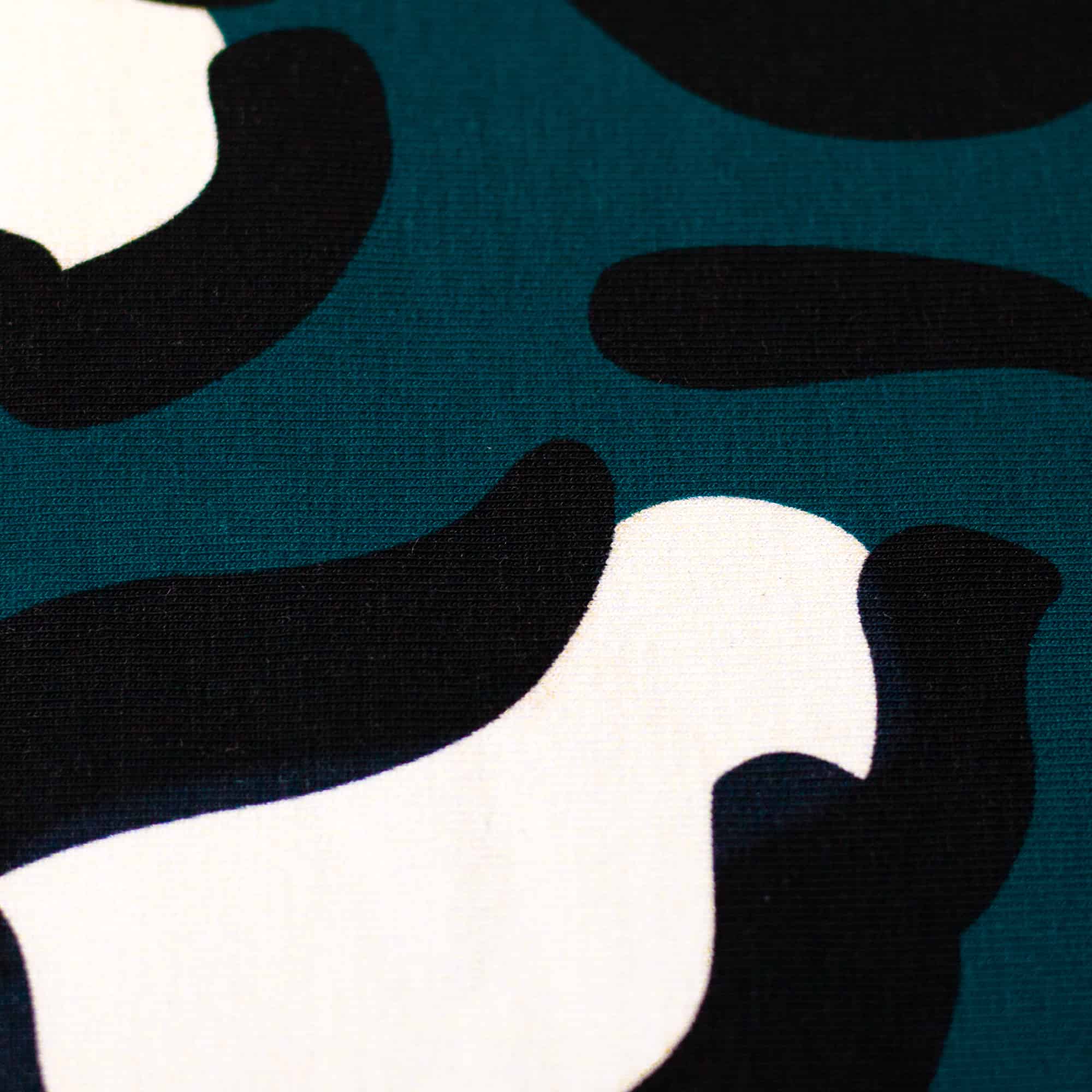 Auffälliges Design mit großformatigem Leo-Print, das durch klare Linien und kräftige Farben besticht. Leo-Print ist weiterhin ein wichtiges Mode-Thema und ist hier in dem tollen, anschmiegsamen Modal French Terry aufgegriffen. Durch den Modal-Anteil ist Sandra besonders weich, angenehm zu tragen und mit einem schönen Fall.