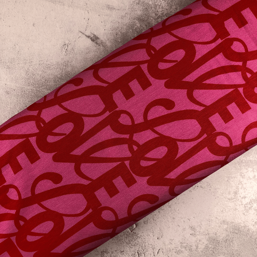 in Pink mit dem Schriftzug "Love" in knalligem Rot. Die Love Collection ist wie eine Party für deine Nähprojekte - voller Lebensfreude, knalliger Farben und Liebe zum Design. Diese Stoffe sind nicht nur schön anzusehen, sie haben auch eine Message: Hab Spaß, sei mutig und lebe deine Liebe zur Mode und zum Design aus. Sei dabei und hol dir diese einzigartigen Stoffe, um deine Kreativität explodieren zu lassen! Ideal für Kleider, Röcke, Sweats, Hoodys, Jogginghosen und Homewear.