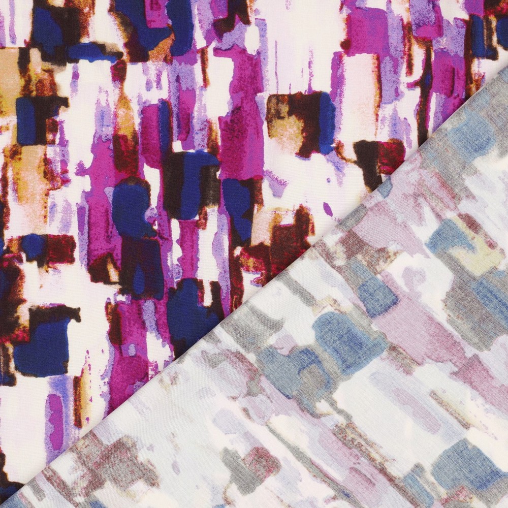 Entdecke unsere moderne Viskose mit abstraktem Digitaldruck in Violett/Bunt