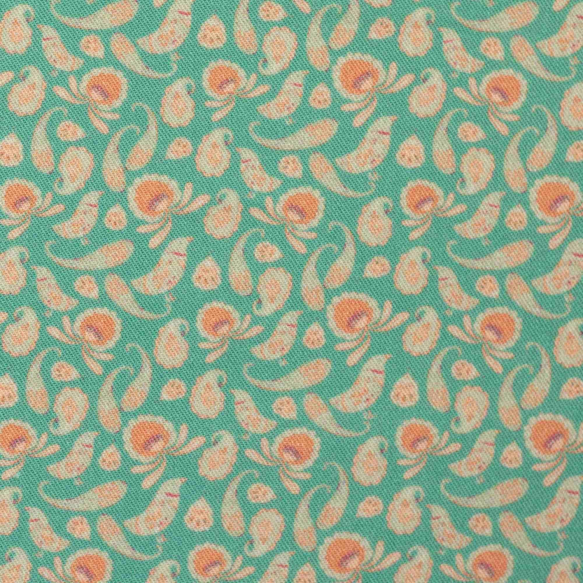 Kleine Vögel in einem Paisley-Muster in wassergrüm geben dieser Viskose eine besonders feine Optik. Mit ihrem herrlich leichten Fall ist sie ideal für Sommer-Kleider, Blusen, Röcke oder Tücher.