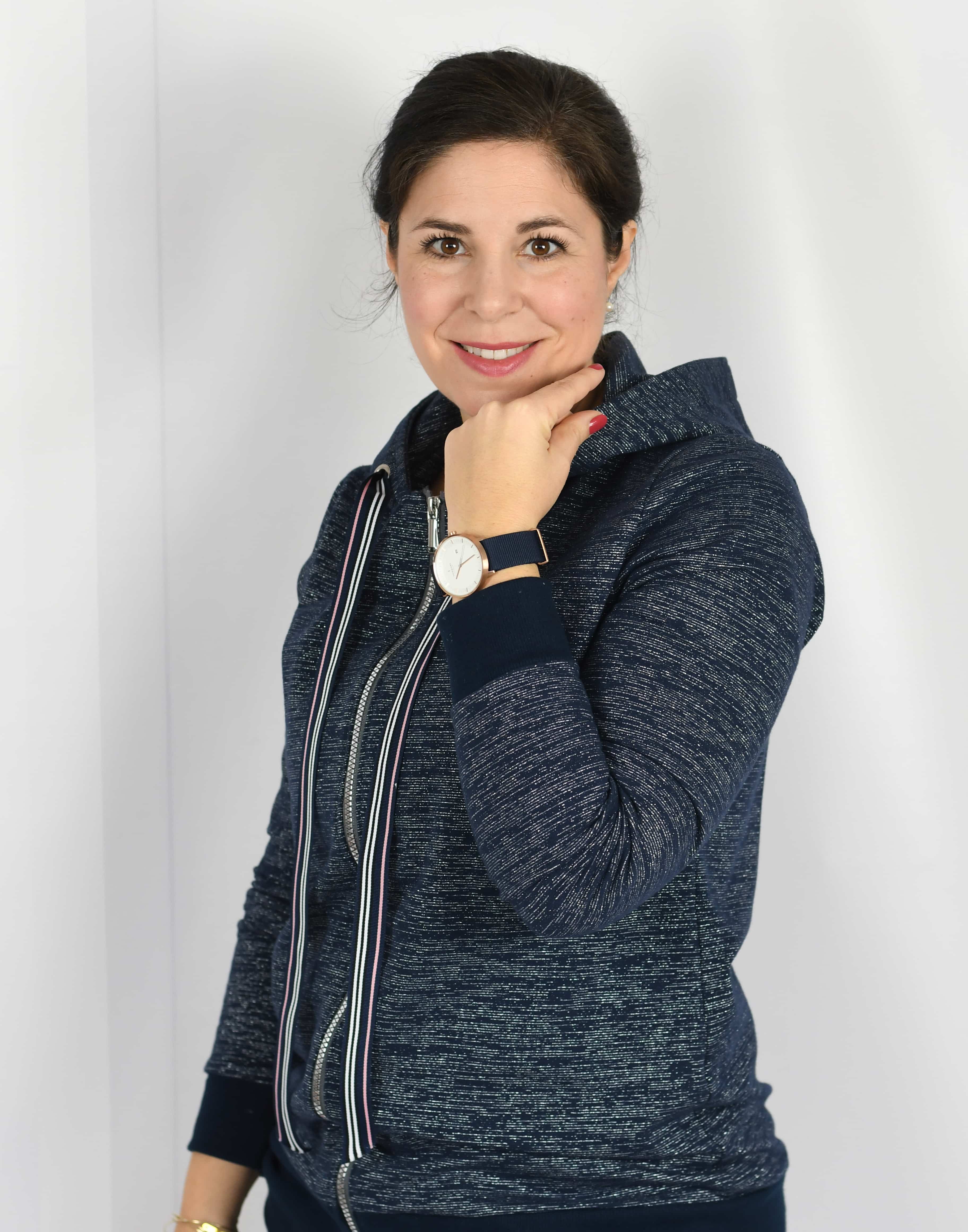 Mit dem Schnittmuster zur Kapuzenjacke nähst Du Dir eine leicht tailliert geschnittene Kapuzenjacke aus Jersey, die im Alltag oder zum Sport trendy, praktisch und gemütlich ist. Die Kapuzenjacke wird mit einem Reißverschluss geschlossen. Du kannst dir optional Bündchen an Ärmeln und Saum nähen. Für eine leicht zu nähende anfängertaugliche Kapuzenjacke wird die Kapuzenjacke ohne Belege genäht, für Fortgeschrittene ist auch eine Version mit Belegen enthalten. Ab Größe 42 sind Brustabnäher im Schnittmuster enthalten.