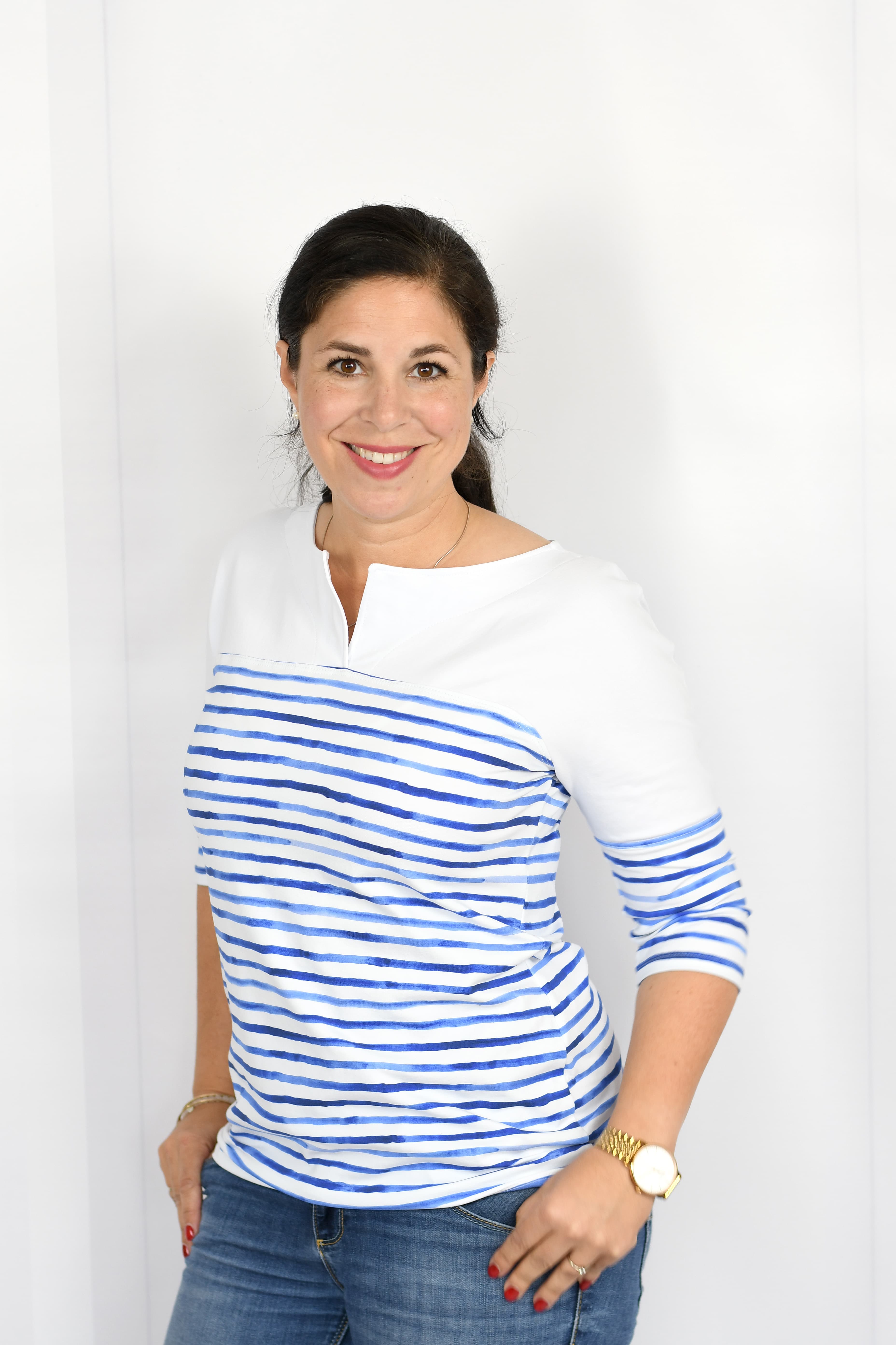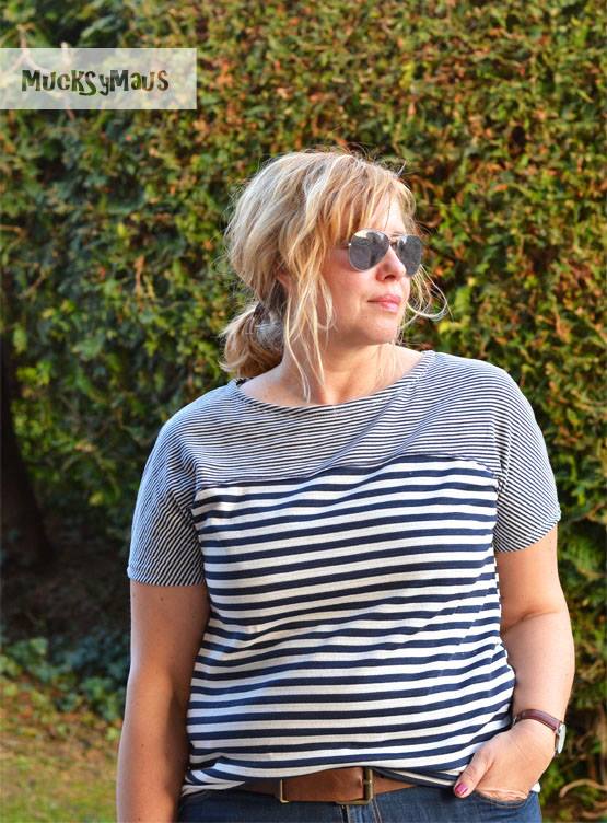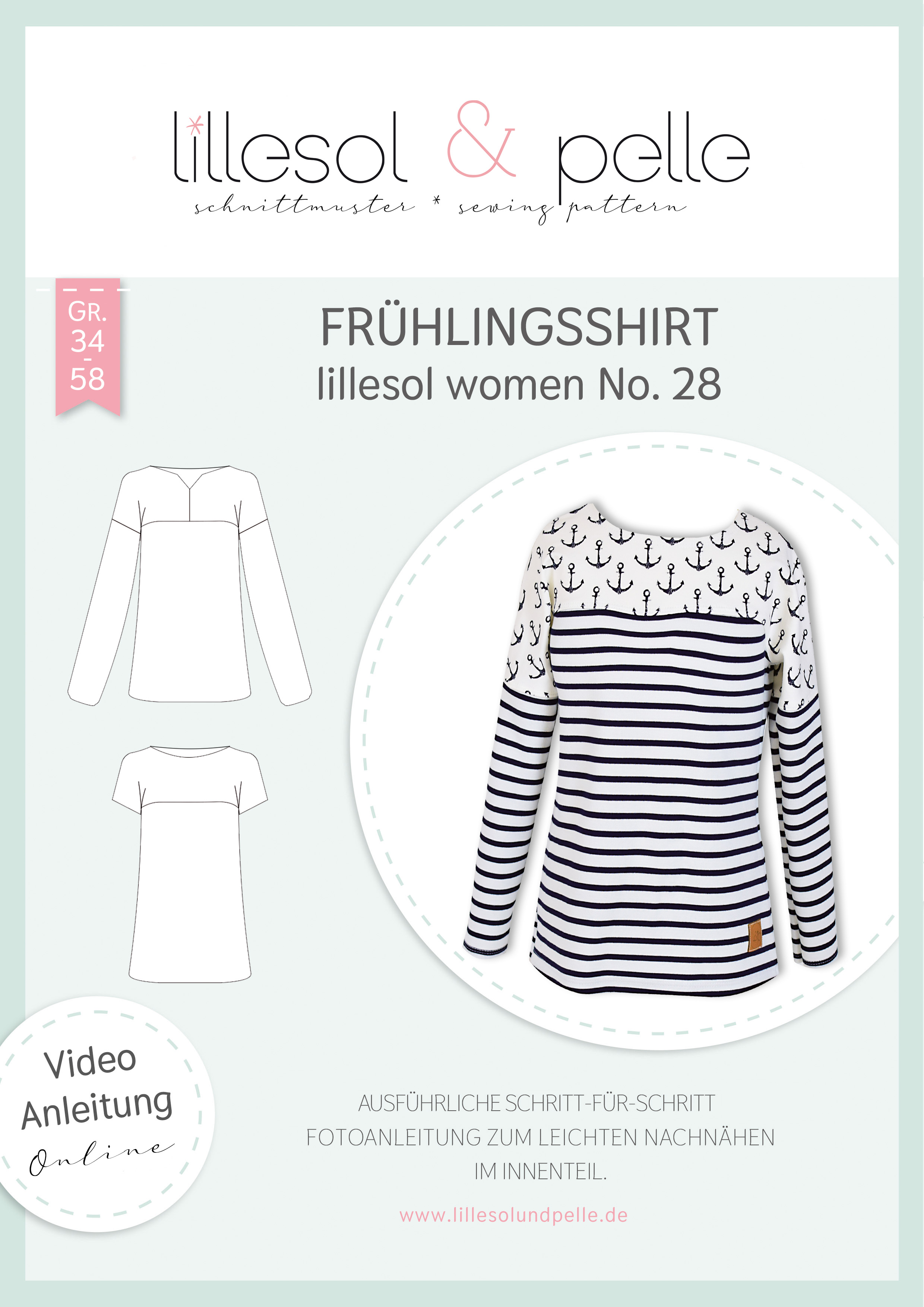 Mit dem Schnittmuster Frühlingsshirt nähst Du Dir ein legeres Shirt mit Passe und überschnittenen Schultern. Die langen Ärmel werden am Oberarm angesetzt, möglich ist ebenso die Variante als Kurzarm-Shirt. Wahlweise kannst du das Shirt mit einer Passe mit Uboot-Ausschnitt, mit oder ohne Belege nähen oder mit einer geschlitzten Passe, die leicht aufklappt.