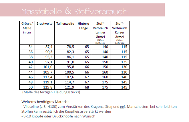 Stoffempfehlung: Es sollten dehnbare Stoffe verwendet werden wie z.B. Jersey oder sehr leichter Sommersweat