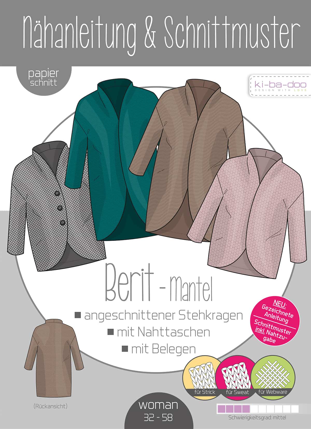Details zum Schnittmuster: Dieses Set enthält alle Schnittmusterteile in den Größen 32-58 in Farbe auf einem DIN A0 Bogen und eine ausführlich bebilderte Nähanleitung als DIN A4 Broschüre. Stoffempfehlung: wollige Stoffe, Strickjaquard, dicker Sweat