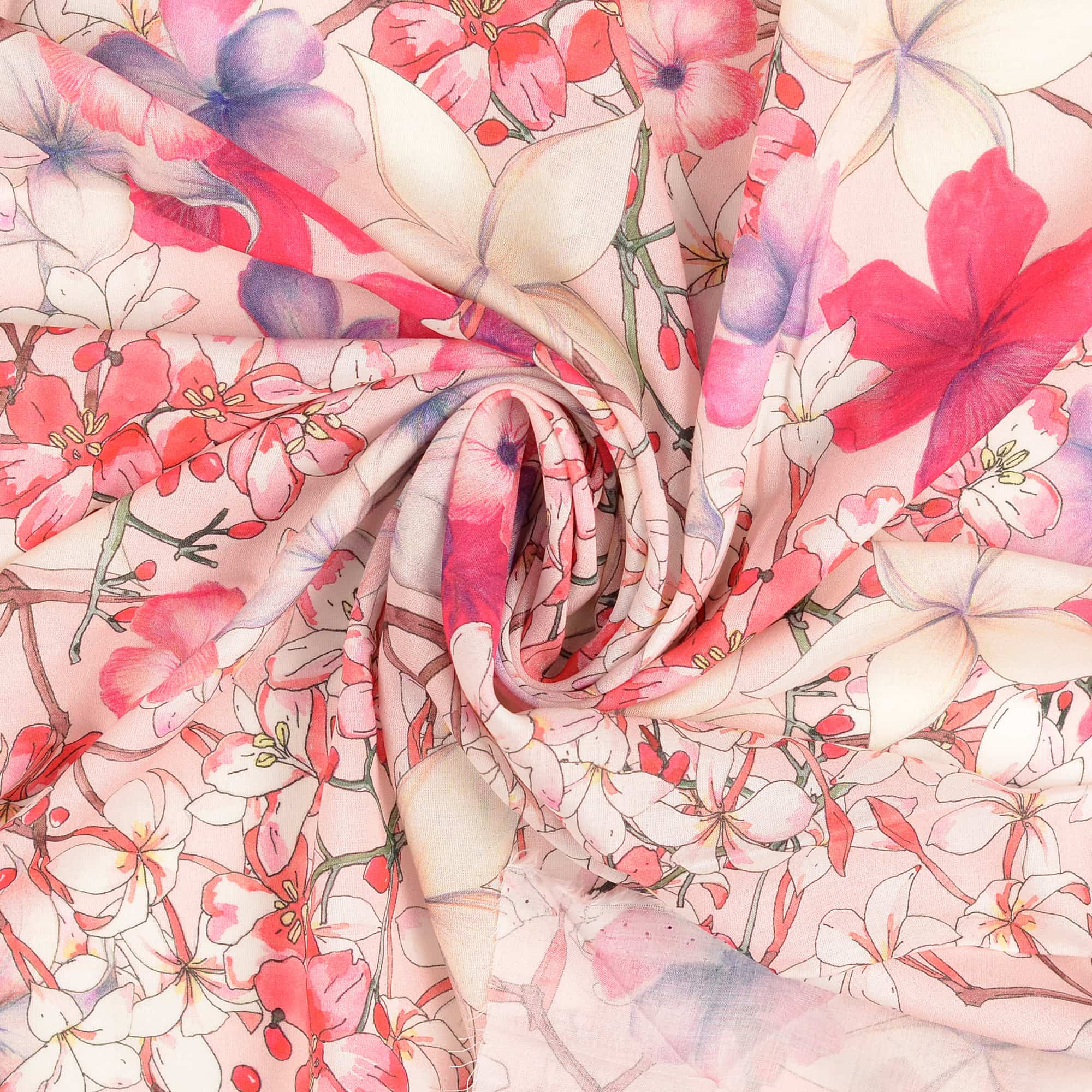 Dieser Voile ist ein zarter und feinfädiger Stoff aus Viskose mit blumigen Druck. Dieser luftige, leicht transparente Premium-Stoff ist wunderbar zu verwenden für Blusen, Kleider und Tuniken.