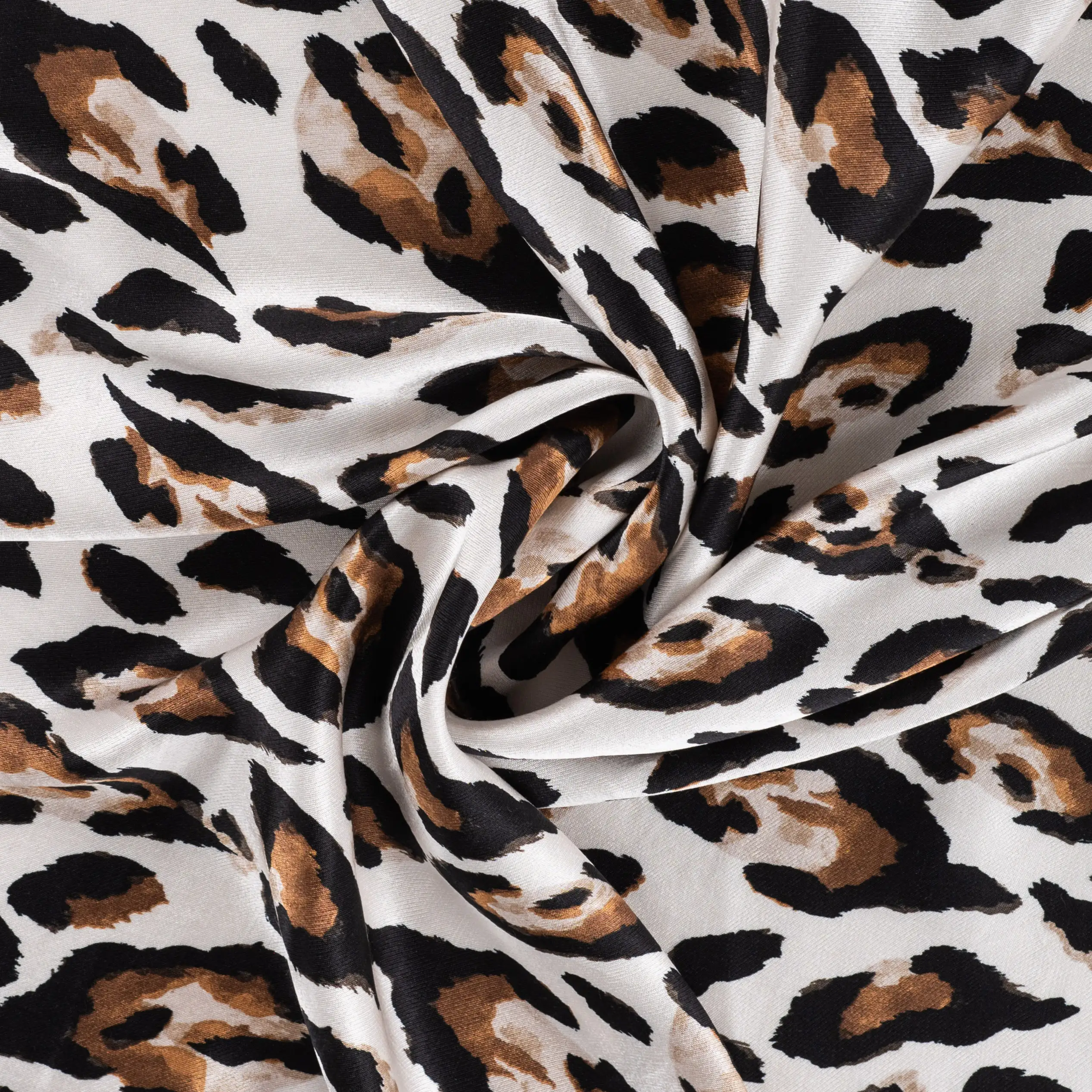 Der Rayon Spun Satin Print „Leopard Sand“ stammt aus der Fashion Autumn Winter 25/26 Kollektion und wurde für kreative Frauen entwickelt, die ihre Garderobe mit selbstgenähten Einzelstücken bereichern möchten. Die Kombination aus hochwertiger Viskose und dem modernen Tierprint macht ihn zum idealen Stoff für stilvolle DIY-Projekte.