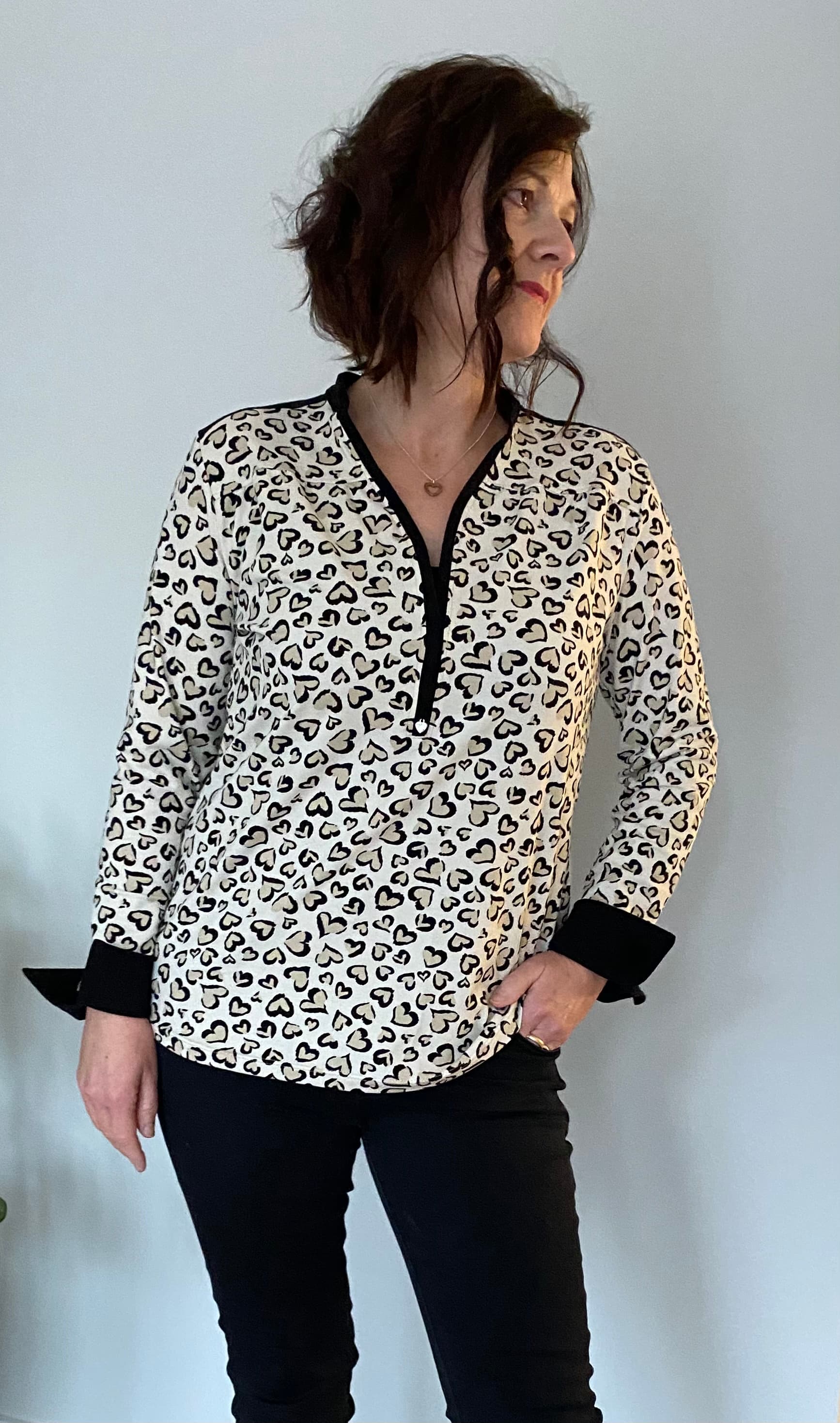 Mit dem Schnittmuster Blusenshirt (Jersey) nähst Du Dir ein tailliert geschnittenes Shirt mit Knopfleiste, Kragen und Manschetten. Es besticht durch raffinierte Details wie die Raffung an Vorder- und Rückseite sowie die zusätzlichen Schulterpassen.