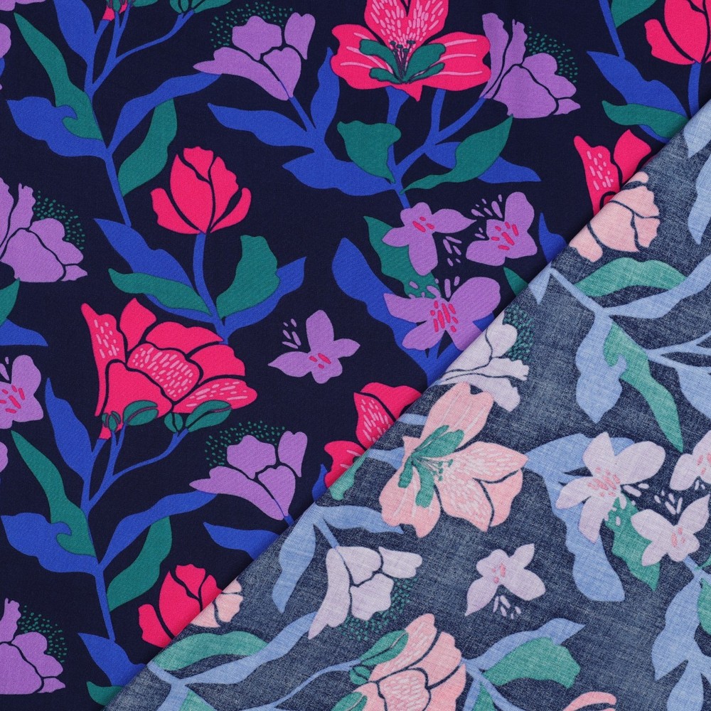 Eine herrliche Viskose im besonderen Blumendesign aus der neuesten Stoffkollektion der renommierten Designerin Nerida Hansen.