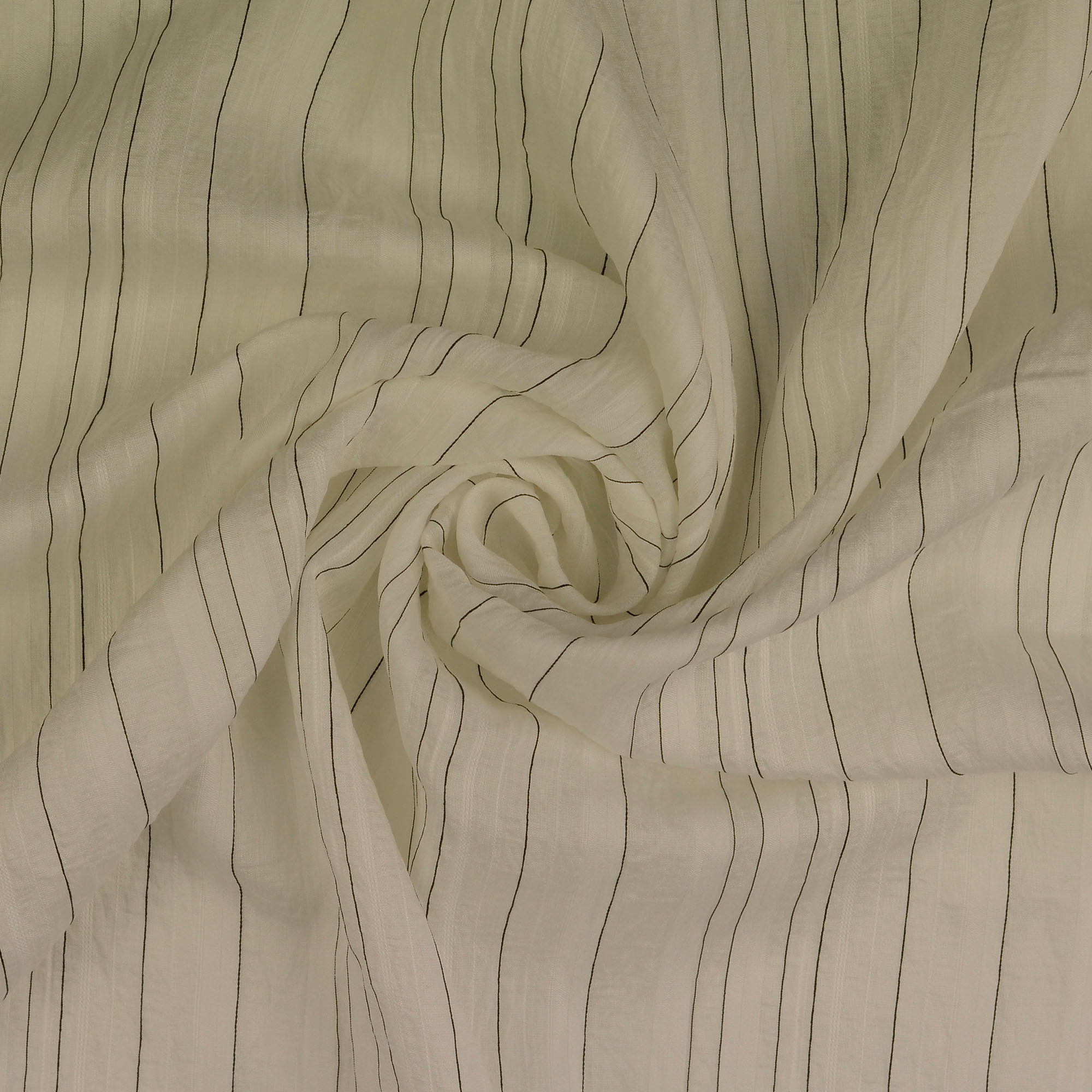 Die schwarzen Linien sieht Du auf dem ersten Blick, auf dem zweiten erst die im weißen Stoff gewebten Streifen. Dadurch erhält diese sommerliche Viskose eine besondere Struktur. Ein traumhaft schöner Stoff für luftige Blusen, Tuniken oder Kleider.