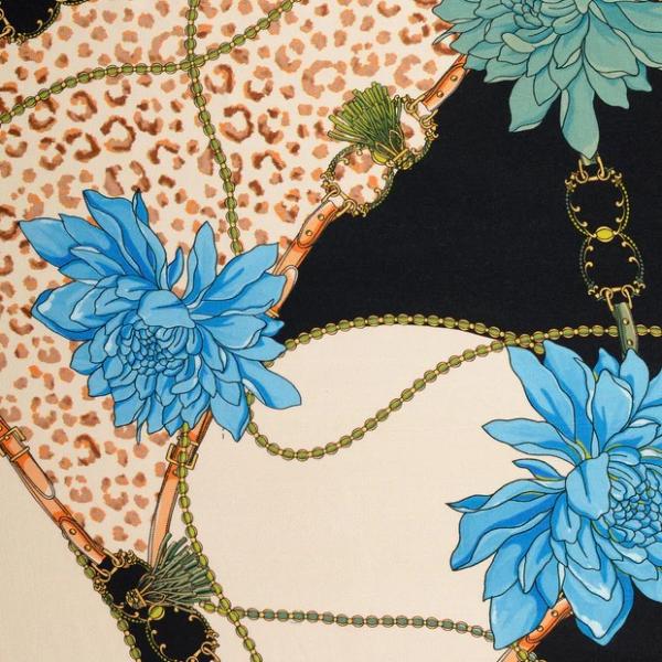 Viskose Satin – Stoff mit Blume-Motiv in Schwarz-Beige