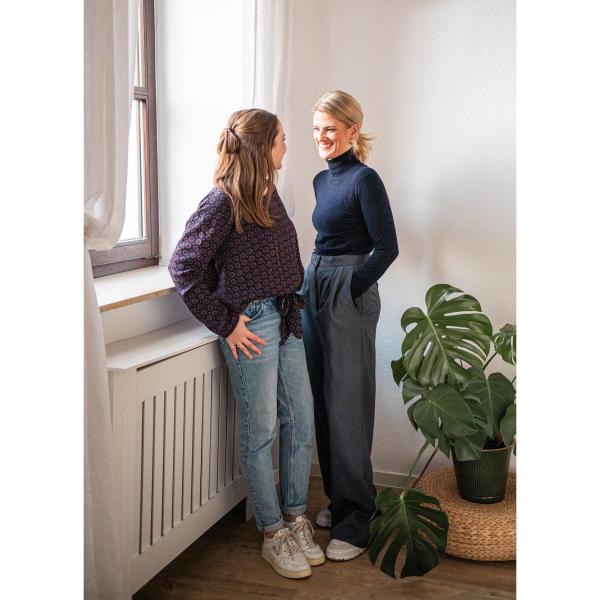 Pflegehinweise: Schonwaschgang bis max. 30 °C, wenig heiß bügeln (bis max. 110 °C), nicht bleichen, professionelle Trockenreinigung im Schonverfahren möglich, nicht im Wäschetrockner trocknen.