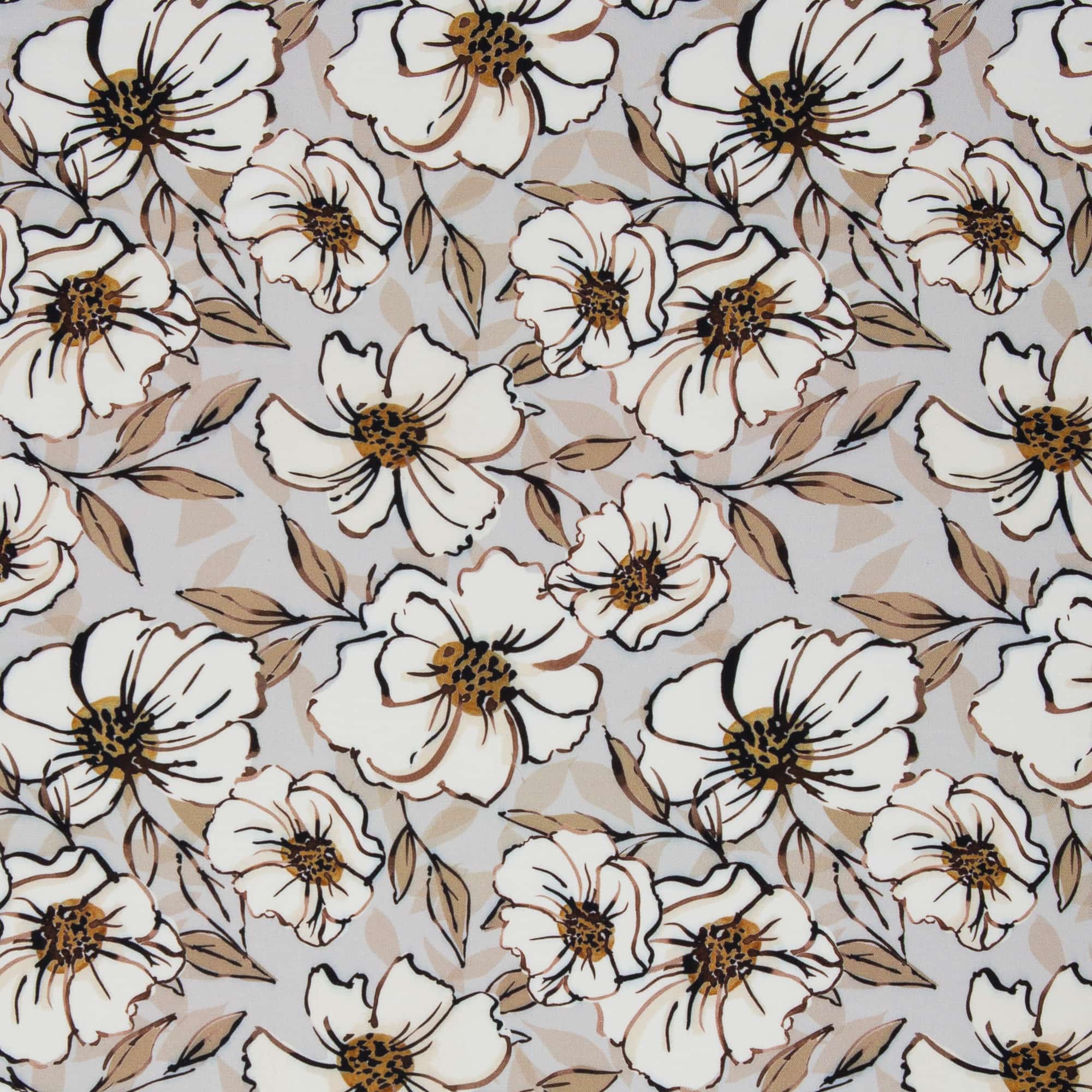 Wunderschöne, große Blumen auf einer tollen Viskose-Webware in kühlen Tönen - das sind die Big white Roses von Christiane Zielinski! Das Dessin zeigt große, weiße, locker gemalte stilisierte Rosen im Aquarellstil. Dezent und doch ausdrucksstark durch die starken Konturen der Blüten entfaltet das florale Dessin eine ganz besondere Wirkung.
