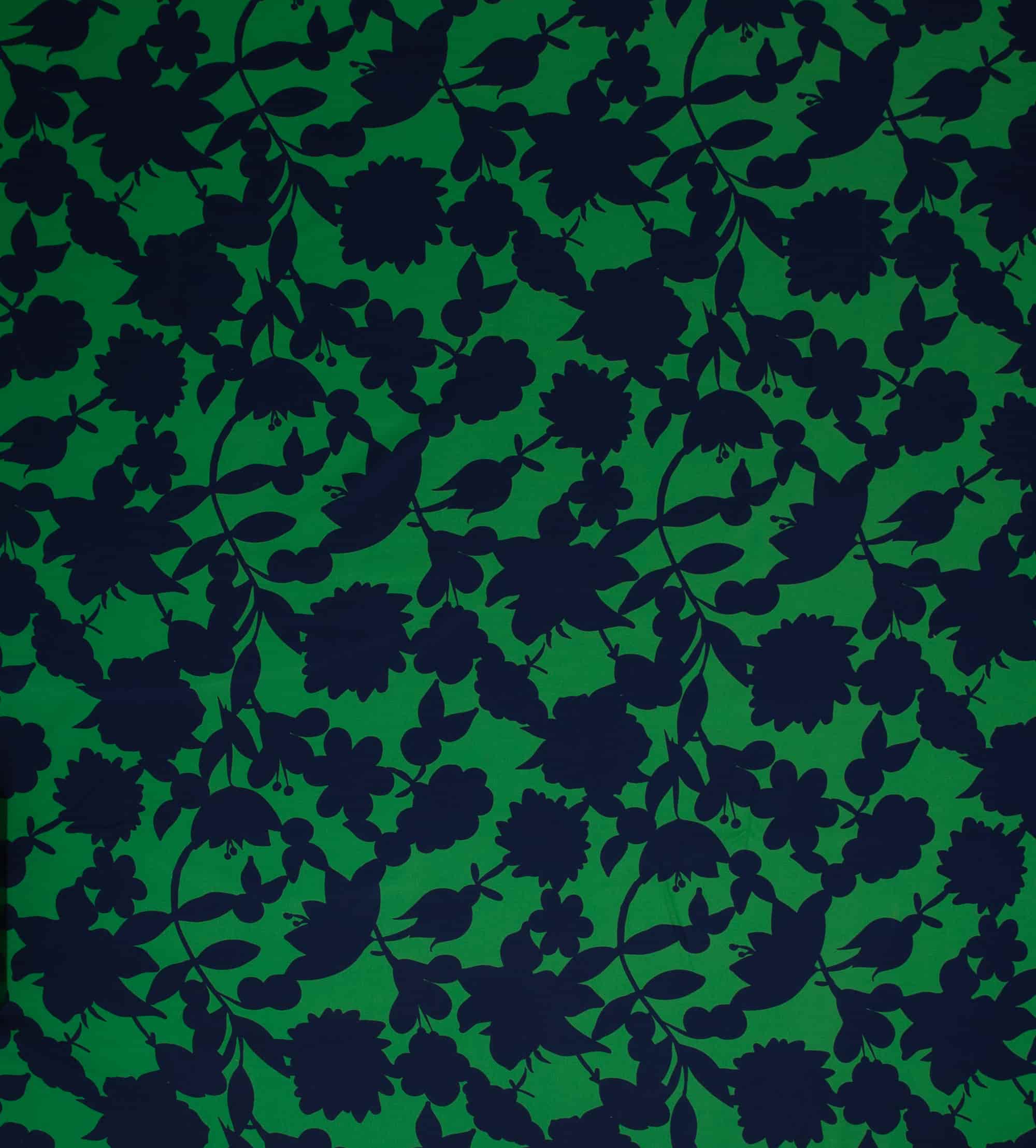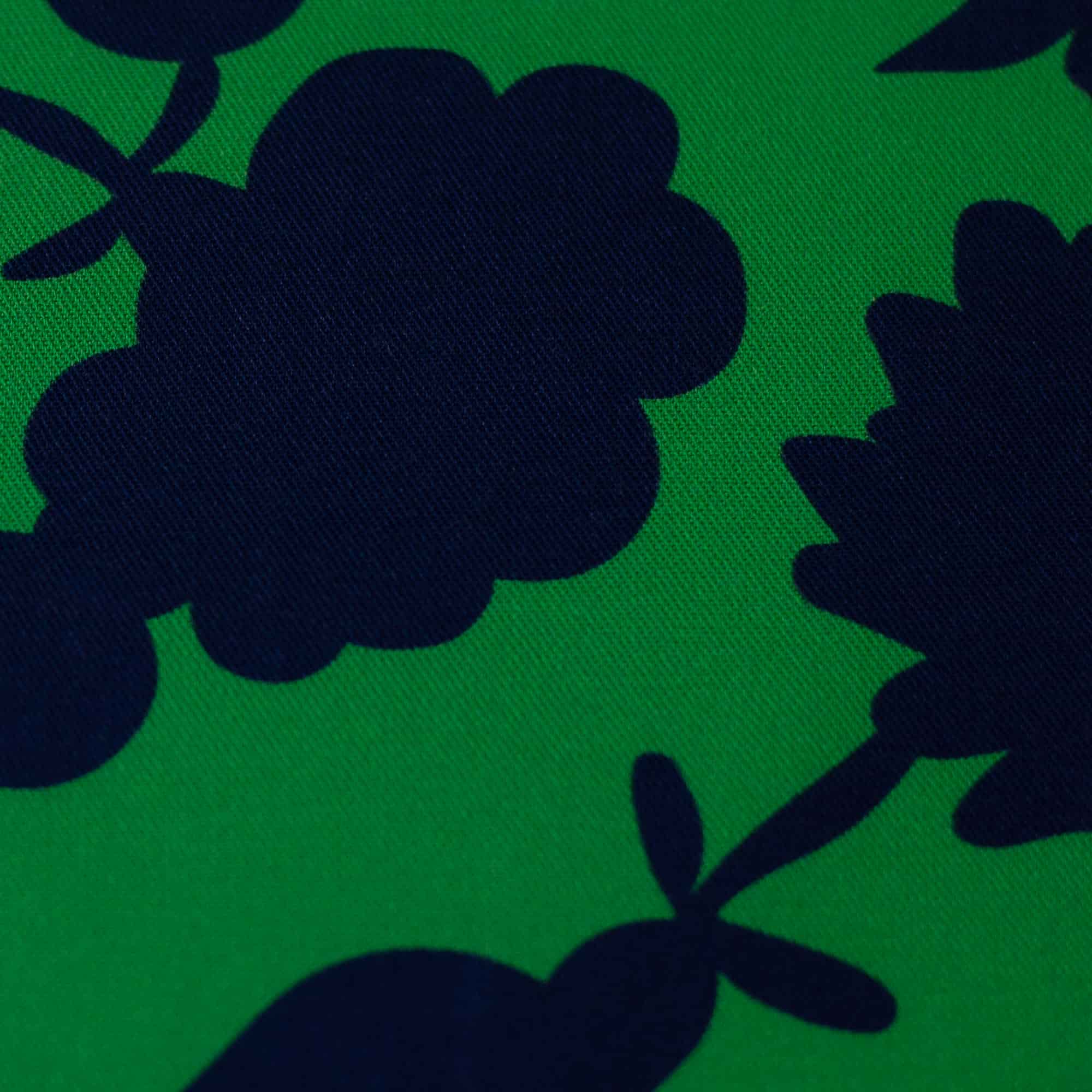 Die Happy Flowers gibt es in zwei tollen, knalligen Farbkombis, hier in dem trendigen, satten Grünton mit Dunkelblau. Die modernen Farben sind ein absoluter Hingucker und so schön für Kleider, Tops, Sommerhosen, Blusen und Tücher.